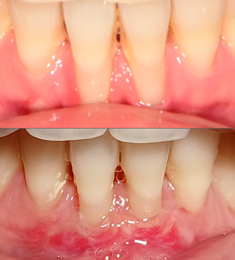 잘못된 교정치료로 발생한 잇몸퇴축 잇몸이식