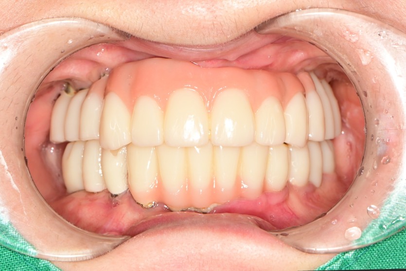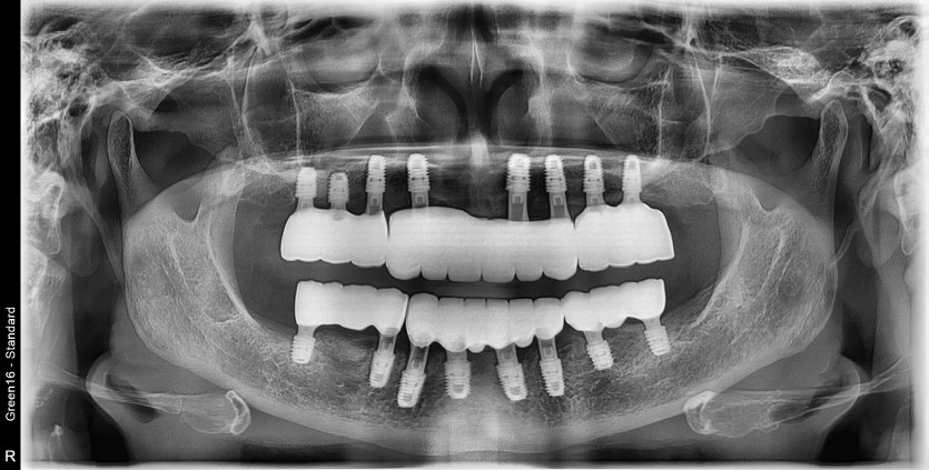 16개의 임플란트로 완성하였습니다.